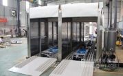 2、外形尺寸:寬4700*高2850*深13900mm,箱體內(nèi)可同時(shí)平排進(jìn)三臺(tái)推車,烘烤時(shí)間可獨(dú)立設(shè)置(見(jiàn)附圖);上料區(qū)長(zhǎng)1500mm,設(shè)有上料斜坡,便于推車進(jìn)入緩沖區(qū);兩端緩沖區(qū)各長(zhǎng)1700mm,各設(shè)有升降平臺(tái),便于推車進(jìn)出烘烤,爐蓋上加裝0.75KW高溫抽風(fēng)風(fēng)機(jī);烘干區(qū)長(zhǎng)7620mm,烘干區(qū)前后裝有隔熱卷閘門,加裝感應(yīng)器,底部設(shè)有傳送鏈條;下料區(qū)長(zhǎng)1500mm, 加裝斜坡 ,以便推車出料。
